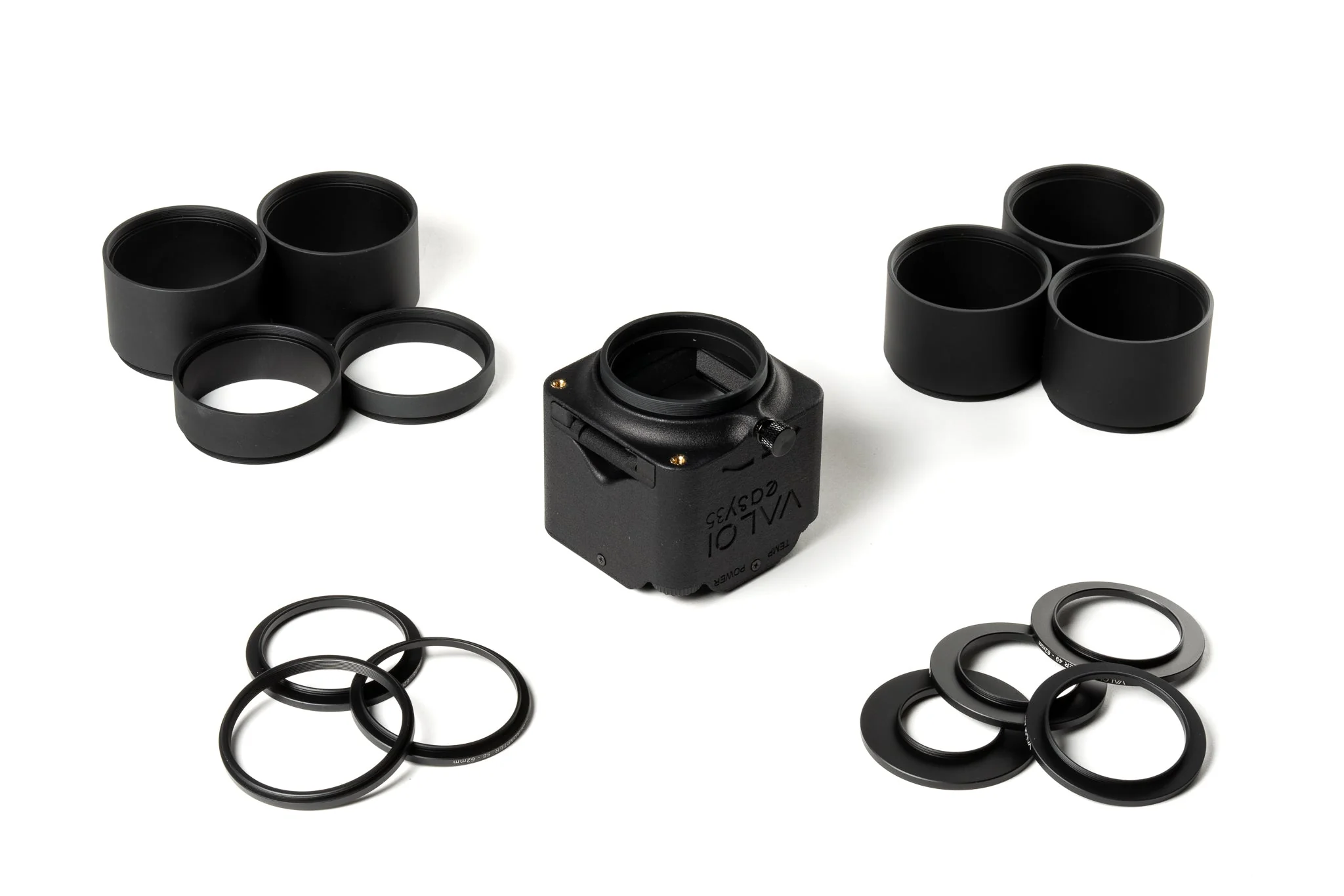 - VALOI filter thread adapters: 39mm, 46mm, 49mm, 52mm, 55mm, 58mm, 67mm (compatible out of the box with lenses with these filter thread adapters - also compatible with 62mm filter threads as this is the native thread size of the easy35 v1)